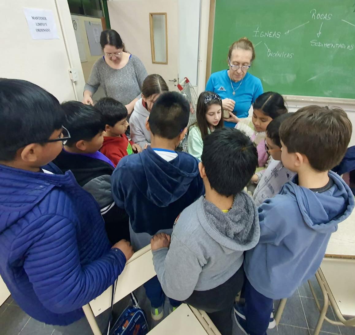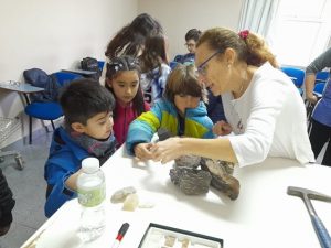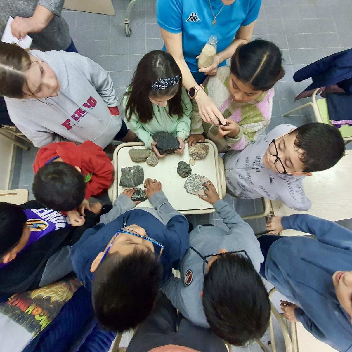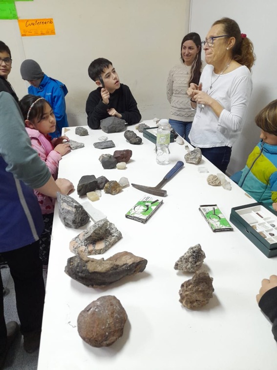 2022. 23/06 - Clase especial de geología en la UNPSJB (Club Municipal de Ciencia y Tecnología) a cargo de la Dra. Gabriela Massaferro, CPA del IPGP. Niñas y niños de los talleres “Arqueología” y “El mar” participaron de una actividad práctica sobre rocas y minerales: formación, clasificación y métodos de reconocimiento.