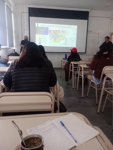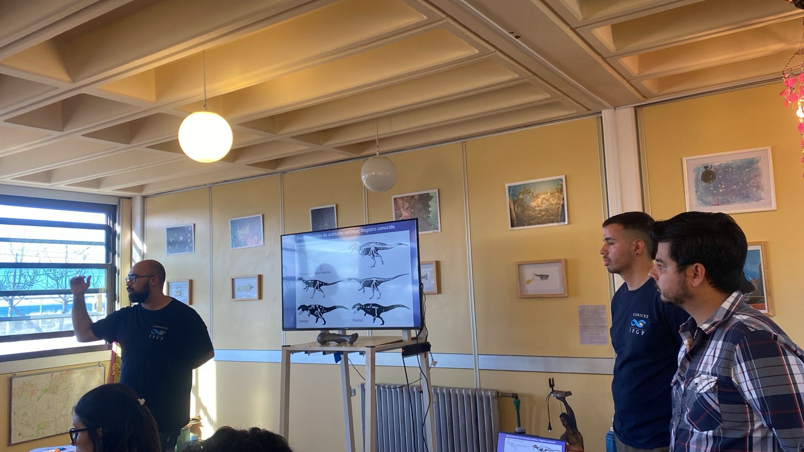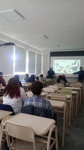 2025. 23/09 - Charla Evolución de los Dinosaurios en la Universidad de la Patagonia San Juan Bosco por Lic. Javier González Dionis y Lic. Emanuel Seculi Pereyra en el marco de la semana del estudiante. Charla de divulgación con estudiantes de biología y turismo donde se exploró el trabajo paleontológico, la evolución y diversidad de los dinosaurios en Patagonia.