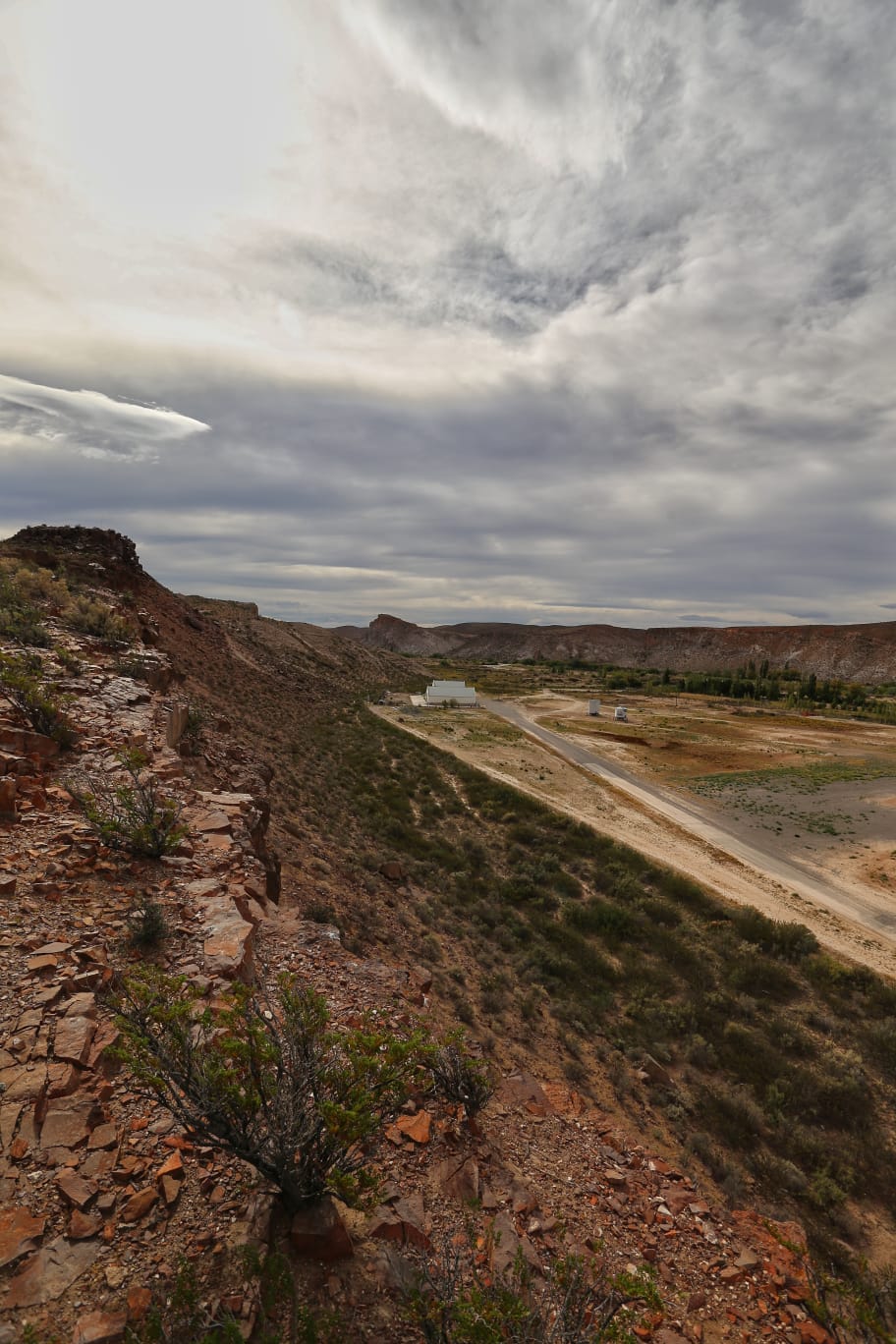 • Parada en el Mirador Las Plumas, donde se contextualizó la Cuenca de Cañadón Asfalto y se observaron afloramientos jurásicos de las formaciones Marifil y Lonco Trapial, junto con rocas cretácicas de la Formación Cerro Barcino.